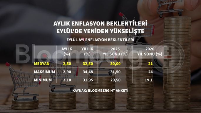 Yıllık olarak bakıldığında ise Eylül için en yüksek enflasyon tahmini yüzde 32,5 olurken en düşük tahmin yüzde 31,95 seviyesine işaret etti.