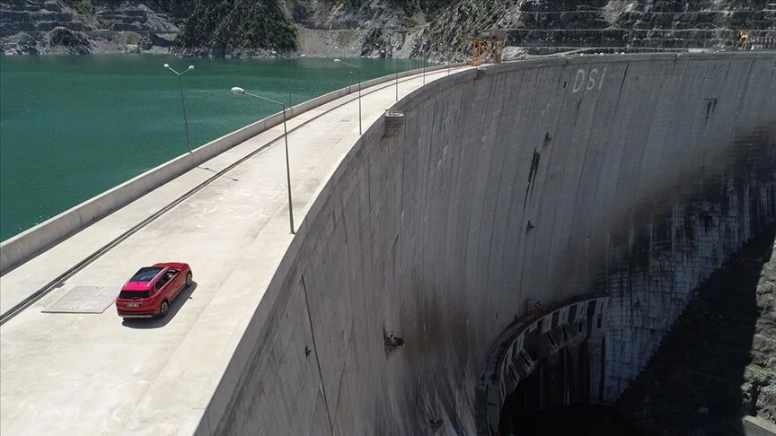 Türkiye’nin yerli otomobili Togg, temelden 249 metre yüksekliğiyle Türkiye’nin Yusufeli Barajı’ndan sonra en yüksek barajı olan Deriner’in gövdesine getirildi.
