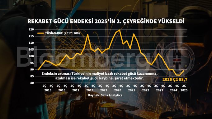 - TÜSİAD Maliyet Bazlı Rekabet Gücü Endeksi (TÜSİAD-RGE), son bir yıllık düşüş eğiliminin ardından 2025 yılının ikinci çeyreğinde bir önceki çeyreğe göre yüzde 3 yükselerek 88,7 değerini aldı.